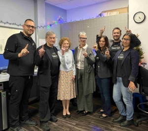 - L-R: Omar Partida (RadNet); Mike Phelps, PhD; Judith Rose, MD (RadNet); Kristi Maya (RadNet), Sherly Mosessian, PhD; Patrick Phelps; Bernadette Omote